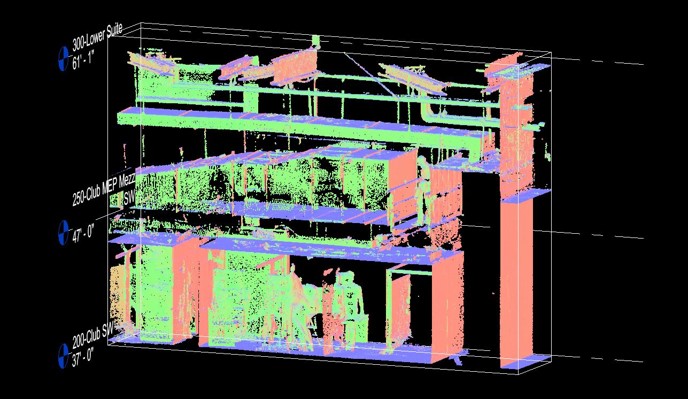 This stadium project, based in USA, involved modeling MEP services from point cloud data. The client provided ReCap files along with architectural and structural Revit models. Using Jet Streamer for 3D viewing and Cintoo for detecting mismatches and missing elements, we ensured precision and clarity. Leveraging high-quality scans, Revit plugins, custom Families, and phased modeling, we overcame challenges and successfully delivered the MEP model for the stadium at LOD 350.